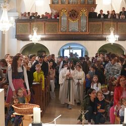 Am 22. April feierten die Erstkommunionkinder nach ihrem letzten Workshopnachmittag ihr Tauferneuerungsfest um 16:30 Uhr in unserer Pfarrkirche.